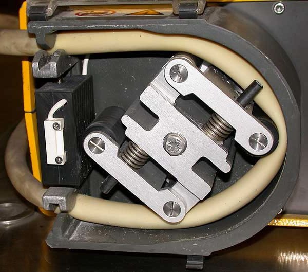 - При использовании перистальтического насоса невозможен ток жидкости в обратном направлении, из одной системы в другую, т.к. он в любой момент времени пережимает шланг или трубку.