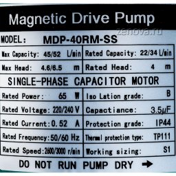 Габаритный чертеж насоса Zenova MDP-40RM-SS-220