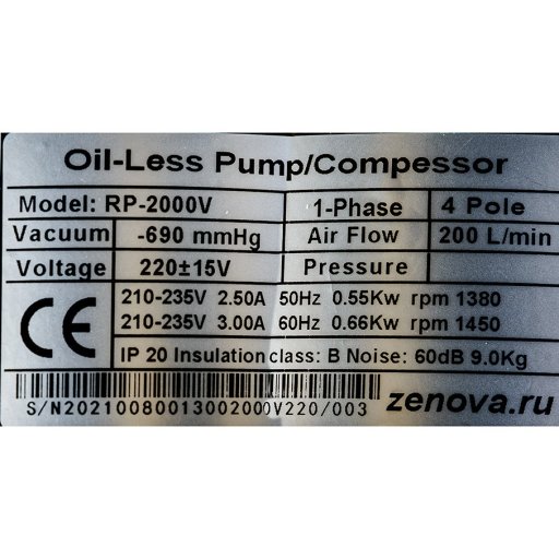 Поршневой вакуумный насос Zenova RP-2000V-220 – это одноступенчатый насос для откачивания закрытых объемов воздуха до остаточного давления 80 мбар.