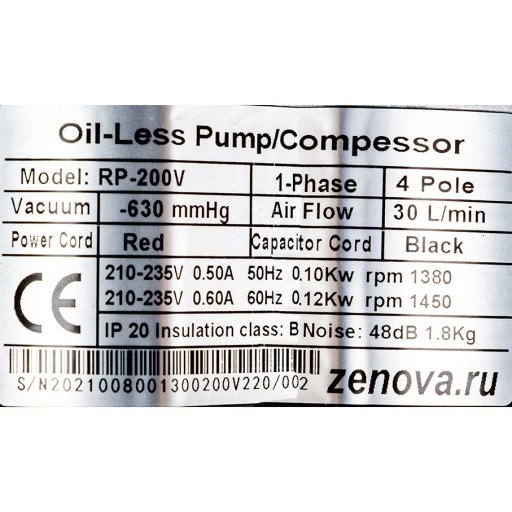 Поршневой вакуумный насос Zenova RP-200V-220 – это компактный одноступенчатый насос для создания вакуума в закрытом объеме с глубиной до 160 мбар.