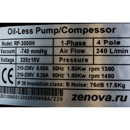 Поршневой вакуумный насос Zenova RP-3000H-220 – это двухступенчатый насос для откачивания закрытых объемов воздуха до остаточного давления 30 мбар.