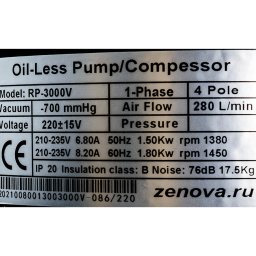 Поршневой вакуумный насос Zenova RP-3000V-220 – это одноступенчатый насос для откачивания закрытых объемов воздуха до остаточного давления 60 мбар.