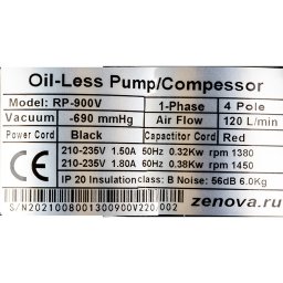 Поршневой вакуумный насос Zenova RP-900V-220 – это одноступенчатый насос для откачивания закрытых объемов воздуха до остаточного давления 80 мбар.