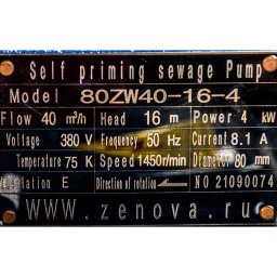 Центробежный насос 80ZW-Y 40-16-4 способен перекачивать грязную и химически неактивную по отношению к материалам насоса воду температурой до +75 °C. Открытое рабочее колесо свободно пропускает взвешенные частицы диаметром до 35 мм и длиной до 400 мм.