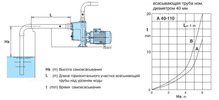 Ниже приведено время, необходимое для самозаливки насоса, зависящие от высоты подъема воды. Обратите внимание, что перед пуском насоса всухую в любом случае следует залить корпус насоса водой (см. Инструкцию).