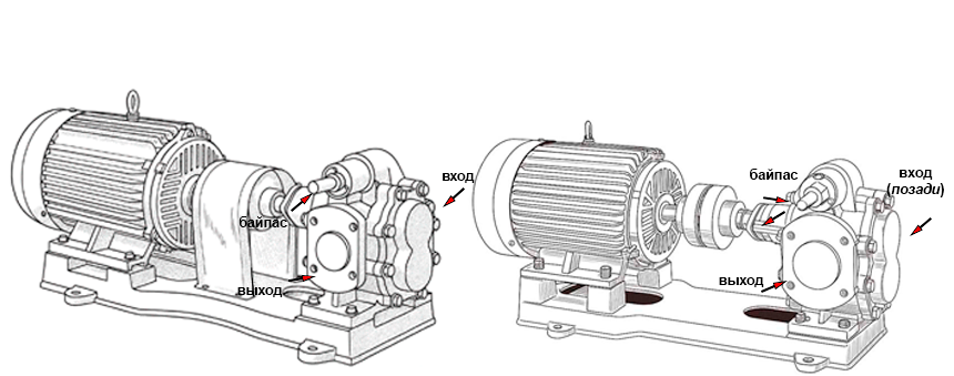 Если смотреть на насос со стороны «головы», всасывающий патрубок находится справа, а напорный – слева; со стороны двигателя – наоборот. Направление работы каждого насоса уточняйте по стрелке на головке: насосы с головками одинакового размера вращаются и качают в одну и ту же сторону.