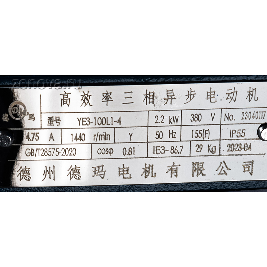 Приводом насоса служит четырехполюсный двигатель 1450 об/мин, класс энергоэффективности IE3, мощностью 2,2 кВт.