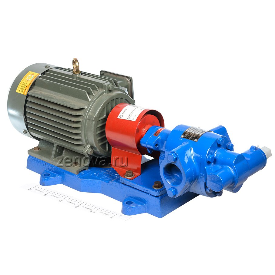 Насос и двигатель расположены на единой раме и соединены полумуфтой.