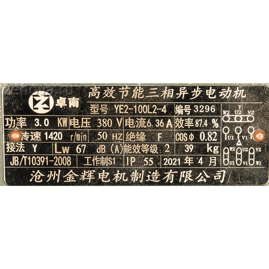Приводом насоса служит четырехполюсный двигатель 1450 об/мин, класс энергоэффективности IE3, мощностью 3 кВт.