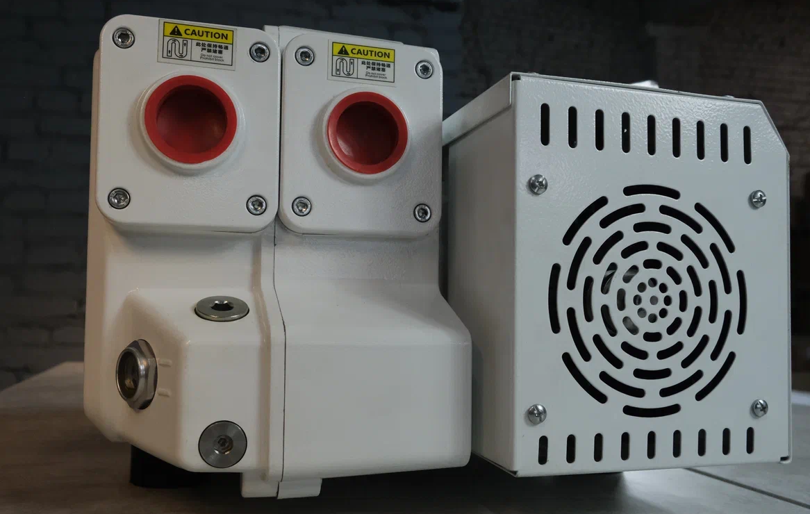 Насос оборудован встроенным обратным клапаном для защиты вакуумной линии от взрывной разгерметизации. Обратите внимание, что этот клапан не предназначен для длительного удержания вакуума после отключения насоса. Если вам нужно обеспечить герметичность вакуумной линии после отключения насоса — установите дополнительный электрический клапан или вакуумный кран.