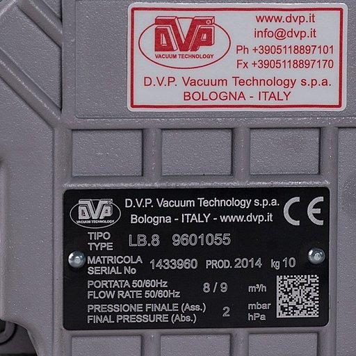 Пластинчато-роторный вакуумный насос DVP LB.8 (Италия) – это одноступенчатый вакуумный насос с масляной смазкой. Насос позволяет откачивать чистый воздух и инертные газы из закрытых систем до предельного вакуума в 2 мбар (гПа). Стандартное оснащение насоса – обратный клапан, масловозвратный клапан. Насос производится итальянской компанией D.V.P. Vacuum Technology s.p.a, заводской номер модели 9601055.