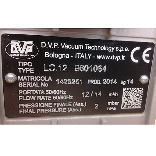 Пластинчато-роторный вакуумный насос DVP LC.12 (Италия) – это одноступенчатый вакуумный насос с масляной смазкой. Насос позволяет откачивать чистый воздух и инертные газы из закрытых систем до предельного вакуума в 2 мбар (гПа), откачивать конденсирующие газовоздушные смеси, создавать постоянный вакуум в диапазоне давлений 400 ÷ 2 мбар (гПа). Стандартное оснащение насоса – обратный клапан, автоматическое газобалластное устройство, масляный фильтр. Насос производится итальянской компанией D.V.P. Vacuum Technology s.p.a, заводской номер модели 9601064.