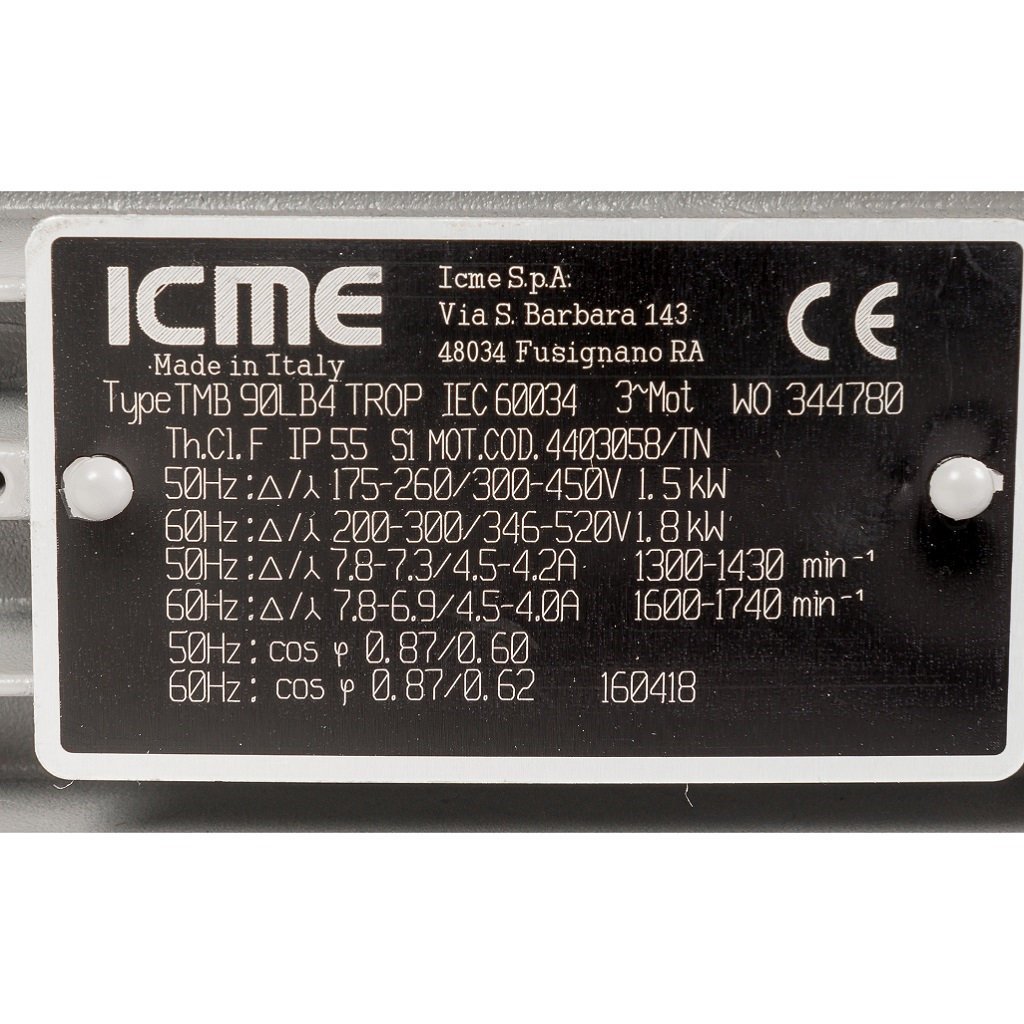 Электротехнические данные двигателя насоса – 3 фазы/380 В/50 Гц, 1400 об/мин, мощность 1,5 кВт.