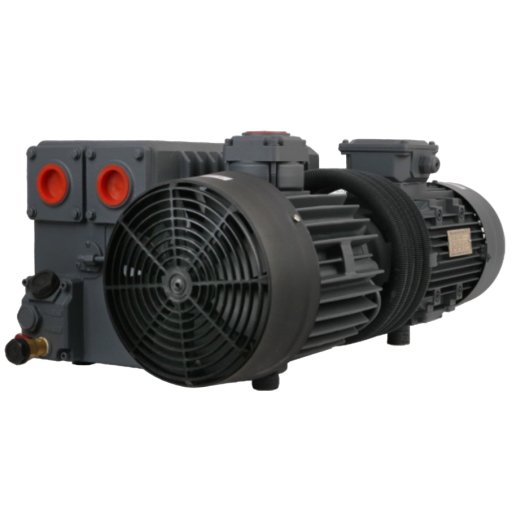Конструкция насоса пластинчато-роторного типа с одной рабочей ступенью, вакуумное масло в рабочем процессе насоса используется одновременно как охлаждающая жидкость, смазка и герметик. Всасывающий и напорный патрубки с присоединением G 1 1/4" (32 мм).