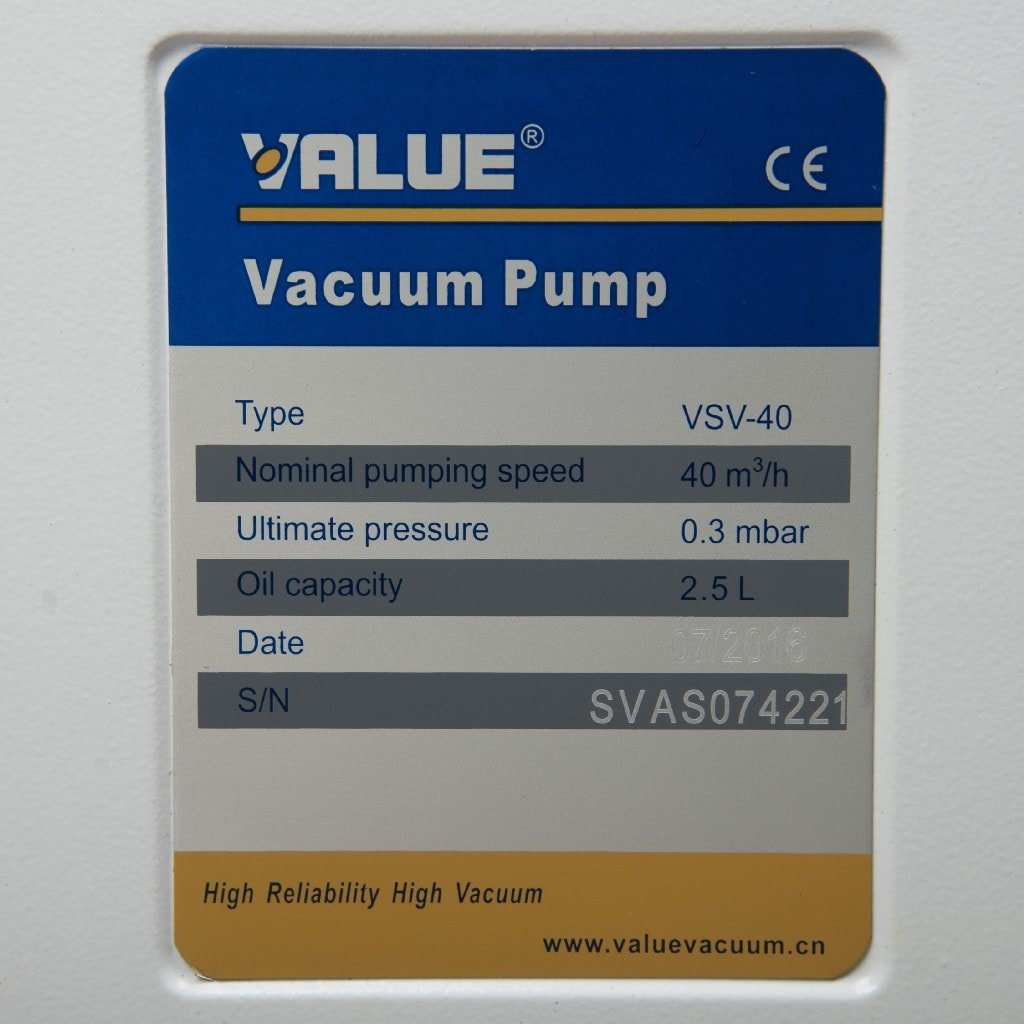 Купили вакуумный насос Value VSV-040 для откачивания неагрессивных газов и поддержки вакуума. Насос работал больше года, после чего глубина вакуума стала постепенно снижаться с 0,4 до 3 мБар. Отправили его на диагностику в Зенову. Случай признали не гарантийным - в насос попала пыль, да и год со дня покупки прошел. Договорились о платной услуге по ремонту, после чего насос нам отремонтировали и отправили его обратно. После ремонта глубины 0.4 мБар как у нового уже не смогли добиться. Из-за попадания пыли появилась выработка в рабочей камере насоса. Теперь насос выдает 0.8 мБар и это уже приемлемо в нашей задаче. Агрегат хороший, стоит брать! Только нужно фильтровать воздух на входе в насос.