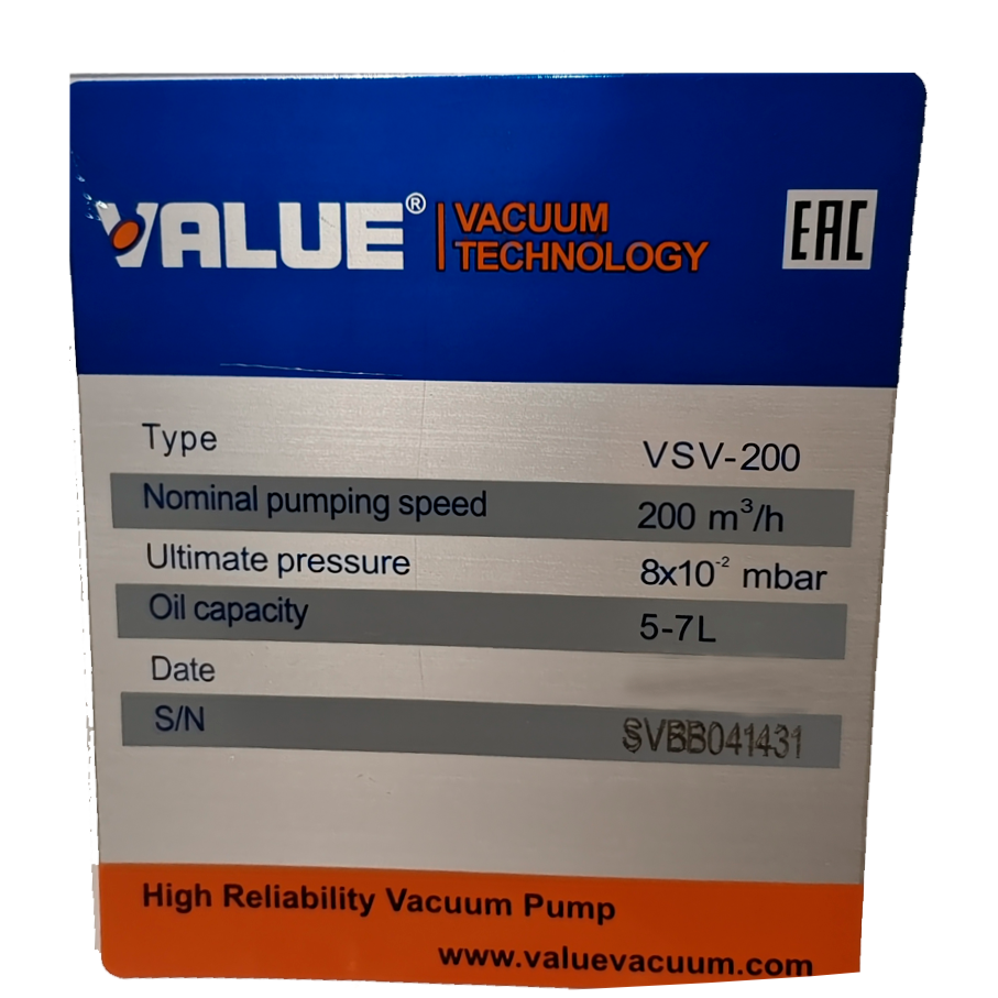 Моноблочный пластинчато-роторный насос Value VSV-200 создает вакуум в закрытых емкостях. Максимальный расход воздуха составляет 200 м³/час. Насос позволяет добиться достаточно глубокого вакуума. Остаточное давление с выключенным газобалластом составляет составляет 0,08 мбар. При газобалласте в положении №1 остаточное давление составляет 0,5 мбар, а при газобалласте в положении №2 остаточное давление 1,5 мбар.