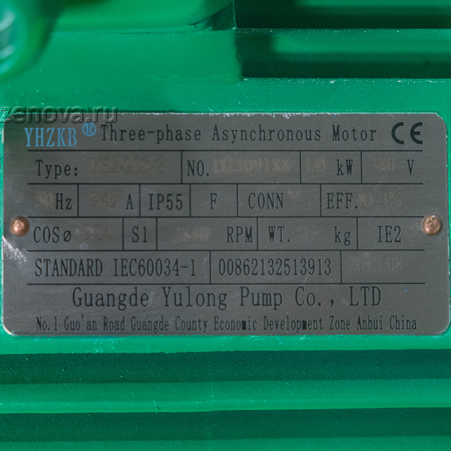 Приводный двигатель 3Ф~, 50 Гц, 380 В, 2840 об/мин, мощность 1,45 кВт.
