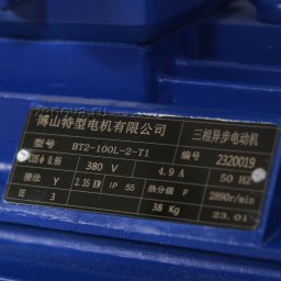 На насосе установлен асинхронный трехфазный двигатель 380 В (50 Гц), 2850 об/мин (2Р), мощностью 2,35 кВт.