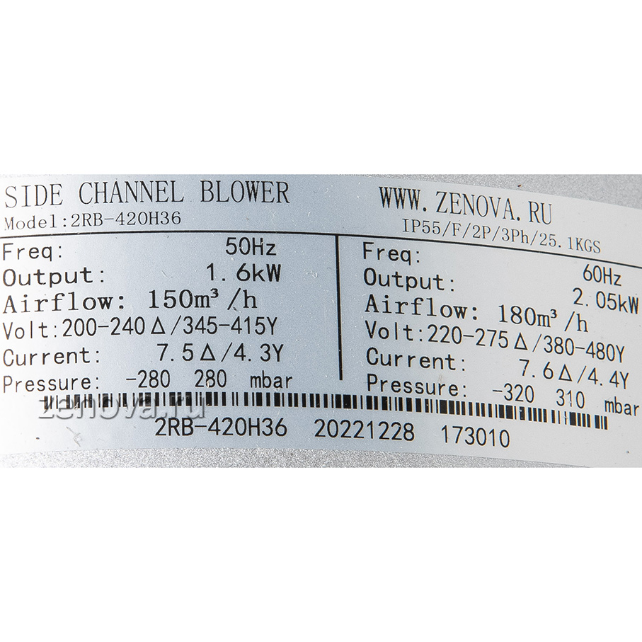 Двухступенчатая вихревая воздуходувка 2RB 420-016 (заводское обозначение 2RB 420 H36) позволяет перекачивать чистый воздух и другие неагрессивные газы. Производится на современном заводе по заказу компании Zenova