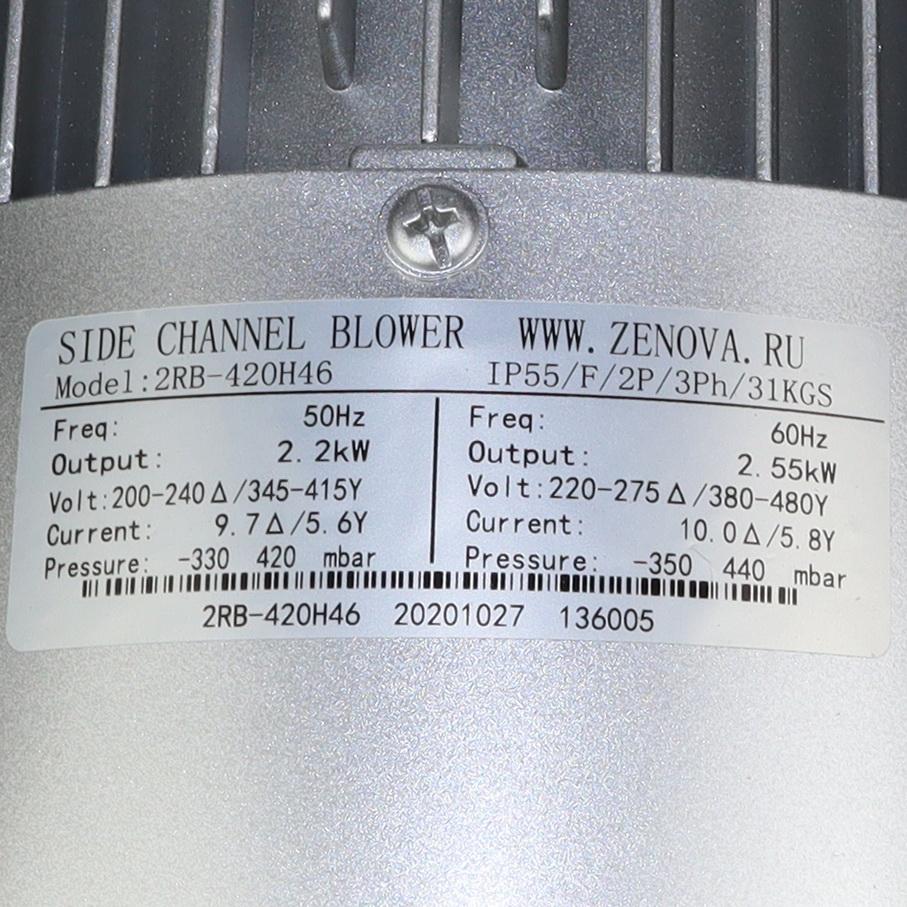 Двухступенчатая вихревая воздуходувка 2RB 420-022 (заводское обозначение 2RB 420 H46) позволяет перекачивать чистый воздух и другие неагрессивные газы. Производится на современном заводе по заказу компании Zenova