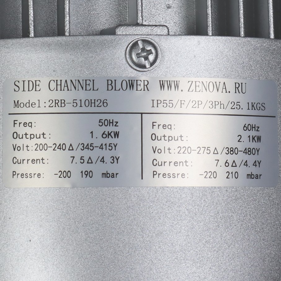 Одноступенчатая вихревая воздуходувка 2RB 510-016 (заводское обозначение 2RB 510 H26) позволяет перекачивать чистый воздух и другие неагрессивные газы. Производится на современном заводе по заказу компании Zenova