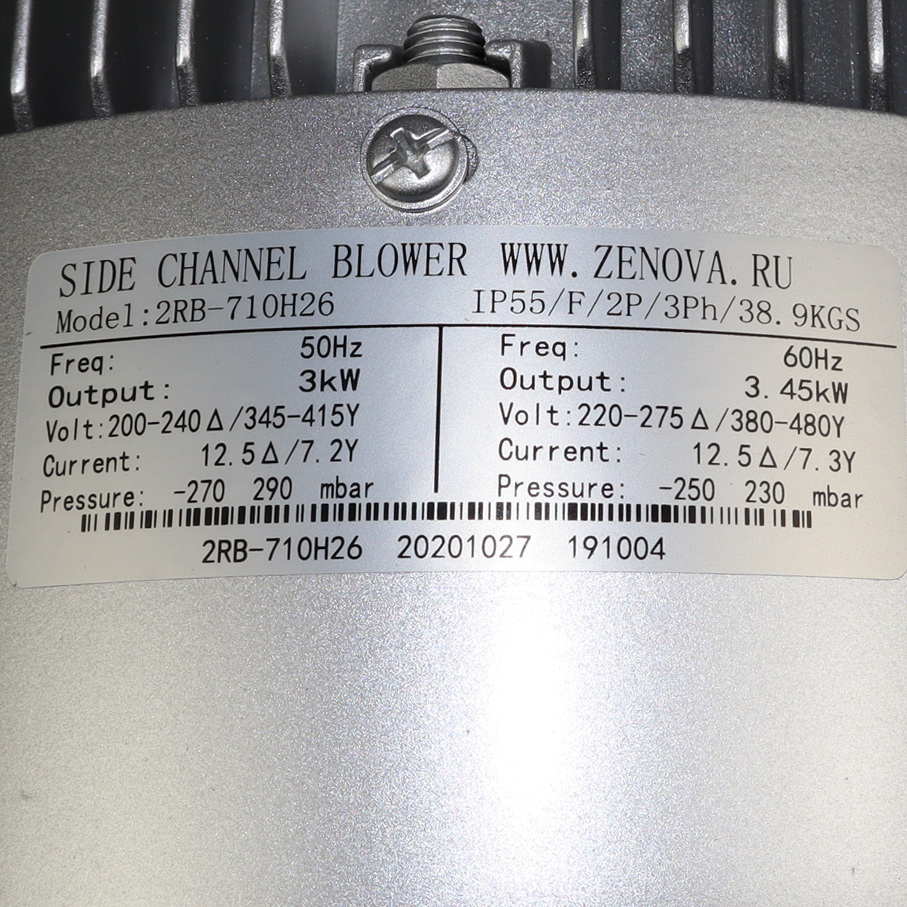 Одноступенчатая вихревая воздуходувка 2RB 710-030 (заводское обозначение 2RB 710 H26) позволяет перекачивать чистый воздух и другие неагрессивные газы. Производится на современном заводе по заказу компании Zenova