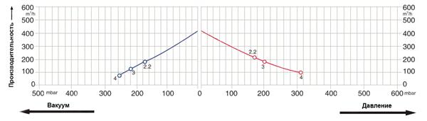 Максимальная производительность воздуходувки 420 м³/час при нулевом перепаде давлений.