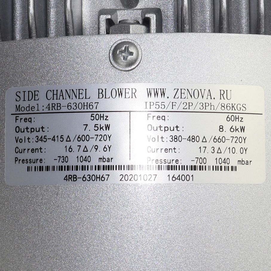 Трехступенчатая вихревая воздуходувка 4RB 630-075 (заводское обозначение 4RB 630 H67) позволяет перекачивать чистый воздух и другие неагрессивные газы. Производится на современном заводе по заказу компании Zenova