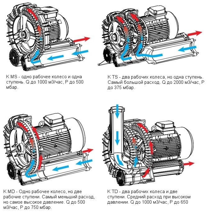 · K TD (twin - два рабочих колеса; double - две ступени) - эта серия обеспечивает большой расход воздуха (как у MS) и высокое давление (несколько меньше, чем у серии MD).
