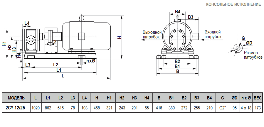 Габаритный чертеж насоса ZY Technology 2CY 12/25