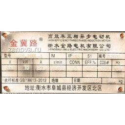 Мощность 15 кВт, скорость вращения 1460 об/мин (4 пары полюсов), 3Ф ~, напряжение 380 В, частота 50 Гц.