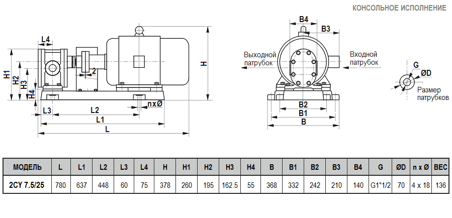 Габаритный чертеж насоса ZY Technology 2CY 7.5/25