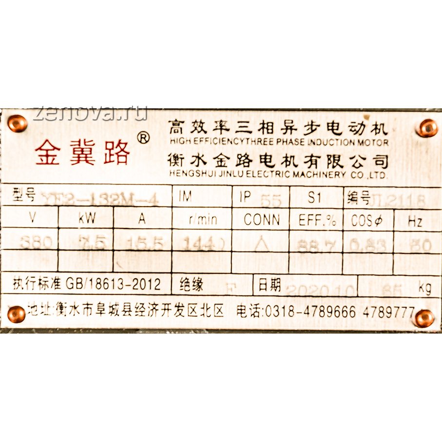 Мощность 7,5 кВт, скорость вращения 1440 об/мин (4 пары полюсов), 3Ф ~, напряжение 380 В, частота 50 Гц.