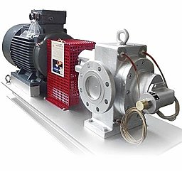 Конструкция насоса FAM представляет собой набор стальных шестерней, заключенных в прочный чугунный корпус (G25). Для работы в тяжелых условиях насос оборудуется специальными самосмазывающимися подшипниками и сальниковыми уплотнениями для улучшения герметичности системы. На насосе устанавливается также асинхронная трехфазная силовая установка и эластичная муфта с защитой.