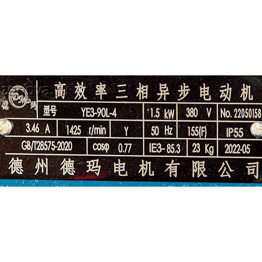 Приводом насоса служит четырехполюсный двигатель 1450 об/мин, класс энергоэффективности IE3, мощностью 1,5 кВт.