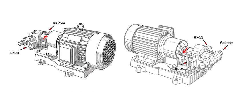 Если смотреть на насос со стороны «головы», всасывающий патрубок находится справа, а напорный – слева; со стороны двигателя – наоборот. Направление работы каждого насоса уточняйте по стрелке на головке: насосы с головками одинакового размера вращаются и качают в одну и ту же сторону.