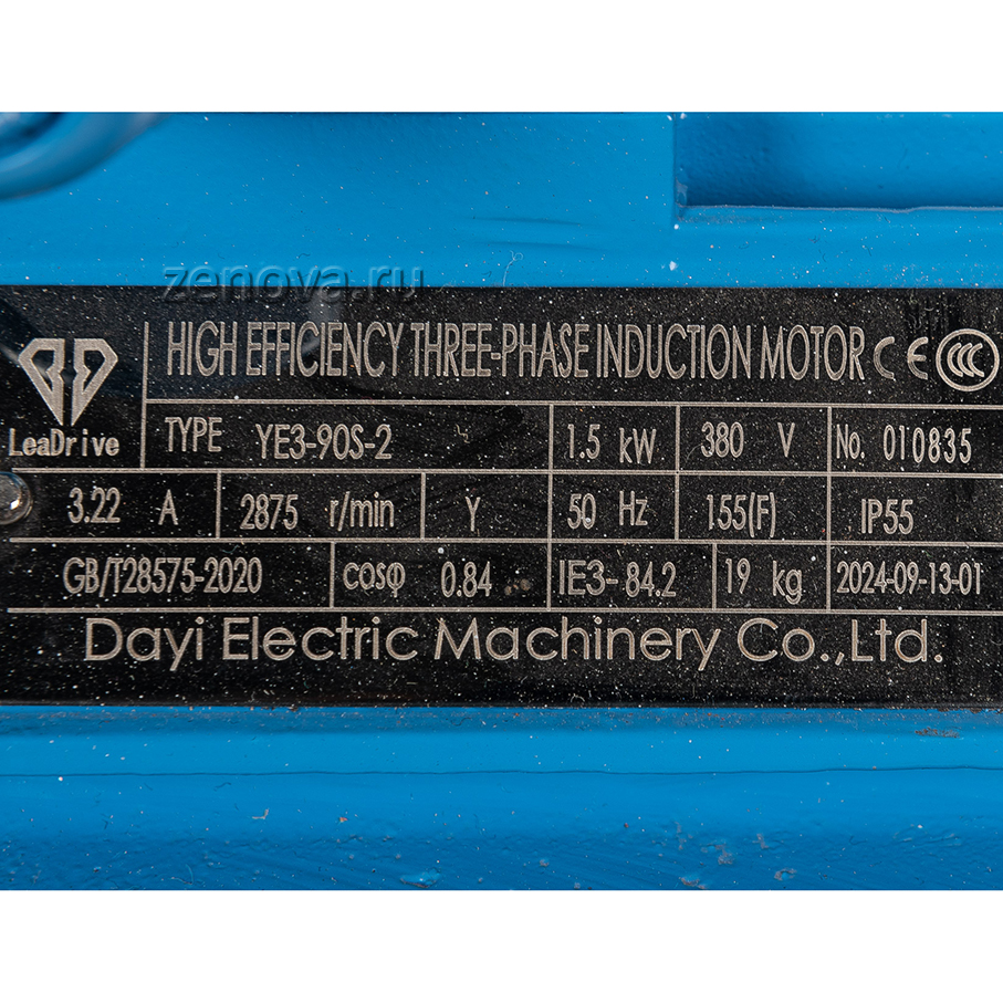 Насос оснащен трехфазным электродвигателем мощностью 1,5 кВт на 2900 оборотов в минуту.
