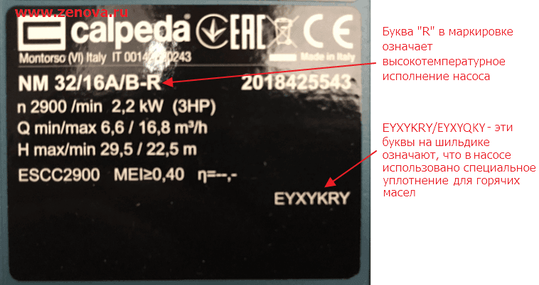 Наши покупатели при получении насоса NM R5 часто задают нам вопрос точно ли он рассчитан на горячее масло. Дело в том, что производитель кладет в коробку с высокотемпературным насосом инструкцию от обычных насосов для воды серии NM. Это и сбивает людей с толку. Однако чтобы убедиться в правильности модели насоса, достаточно взглянуть на его шильдик: