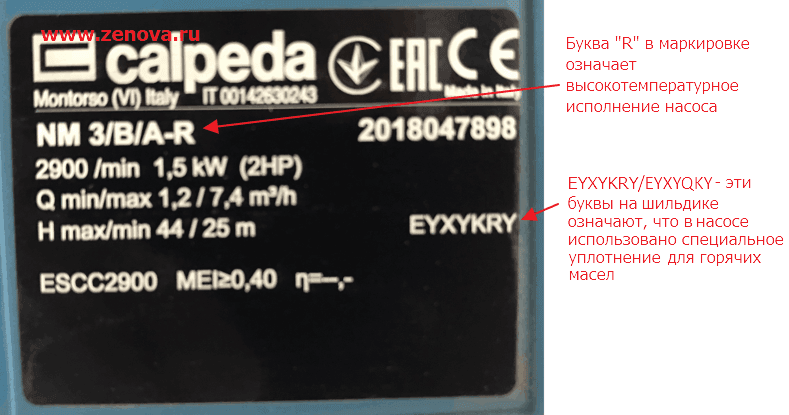 Наши покупатели при получении насоса NM R5 часто задают нам вопрос точно ли он рассчитан на горячее масло. Дело в том, что производитель кладет в коробку с высокотемпературным насосом инструкцию от обычных насосов для воды серии NM. Это и сбивает людей с толку. Однако чтобы убедиться в правильности модели насоса, достаточно взглянуть на его шильдик:
