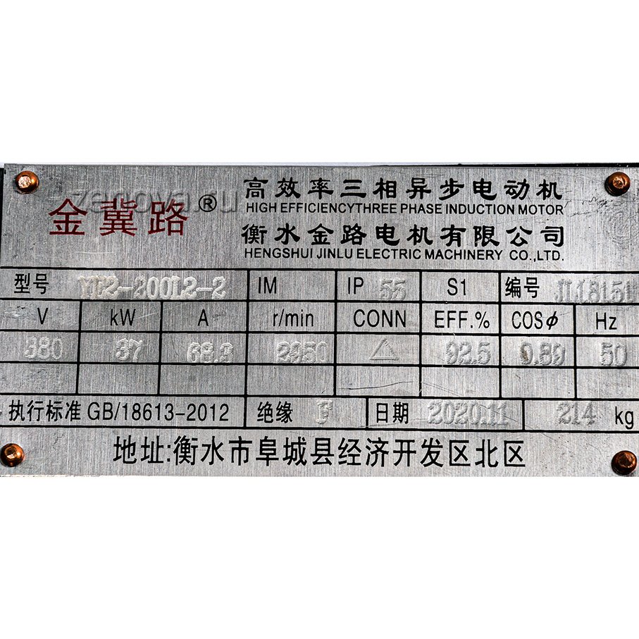 Мощность 37кВт, количество оборотов 2900 об/мин (2 пары полюсов), 3Ф ~, напряжение 380 В, частота 50 Гц.