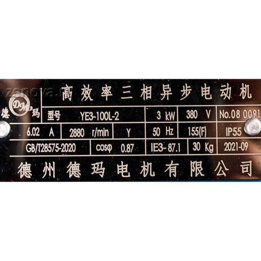 Мощность 3 кВт, количество оборотов 2900 об/мин (2 пары полюсов), 3Ф ~, напряжение 380 В, частота 50 Гц.