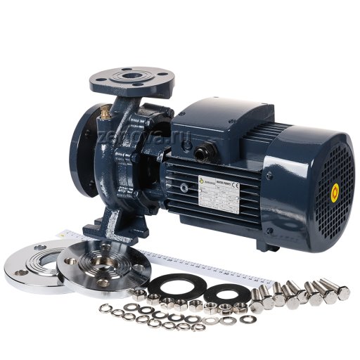 Насос оснащен трехфазным электродвигателем мощностью 0,75 кВт на 2900 об/мин. Стандарт фланца – DIN EN 1092-1 поверхность B тип 01 PN10, DN (диаметр) входного патрубка – 50 мм, выходного – 32 мм.