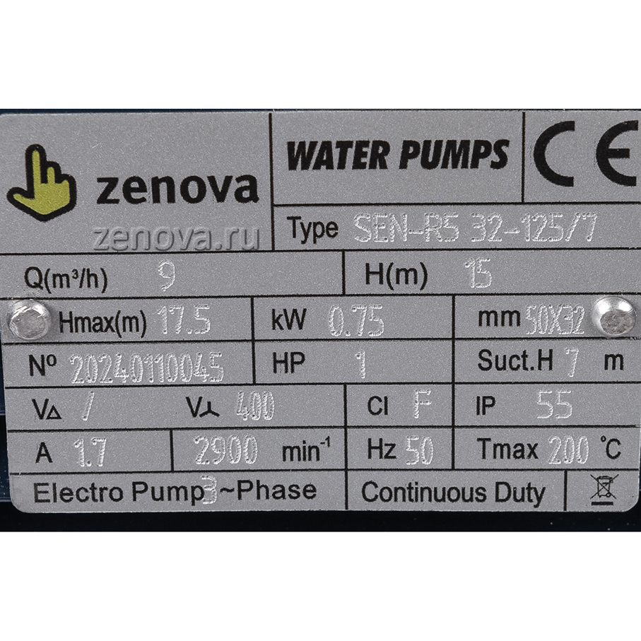 Центробежный моноблочный насос Zenova SEN-R5 32-125/7 производится в Китае. Он позволяет перекачивать горячие масла с температурой до +150-160°C, кратковременно (до 30 минут) до +200 °C.