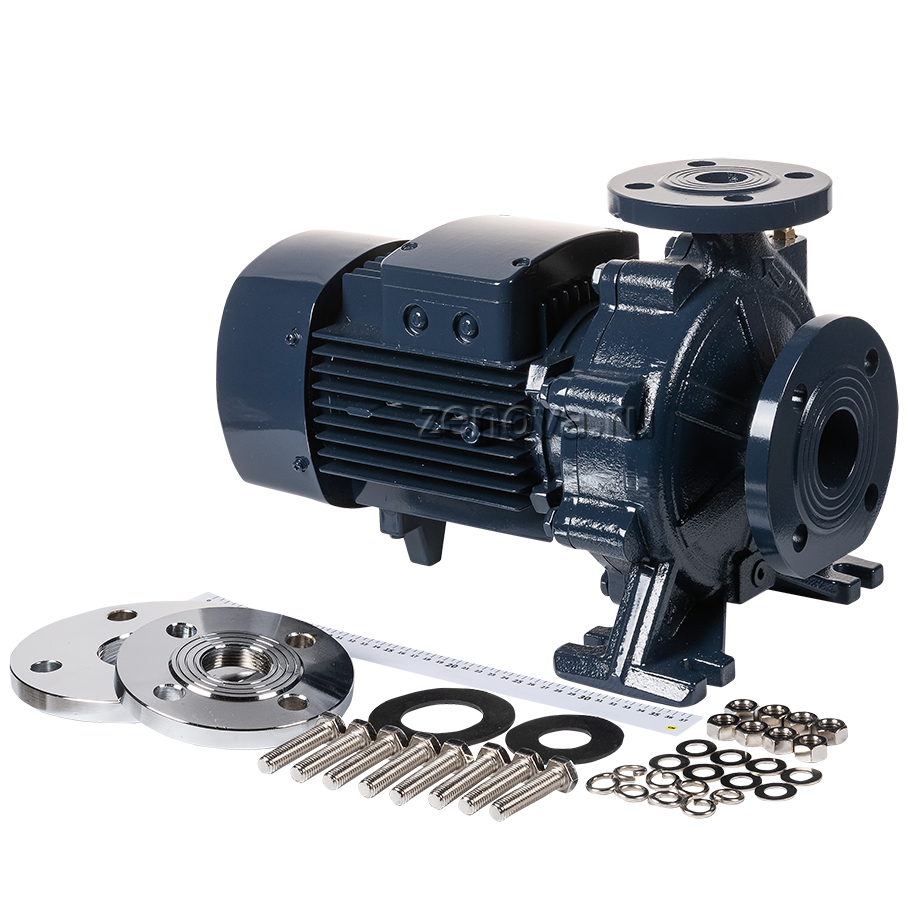 Насос оснащен трехфазным электродвигателем мощностью 1,5 кВт на 2900 об/мин. Стандарт фланца – DIN EN 1092-1 поверхность B тип 01 PN10, DN (диаметр) входного патрубка – 50 мм, выходного – 32 мм.