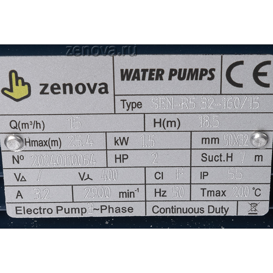 Центробежный моноблочный насос Zenova SEN-R5 32-160/15 производится в Китае. Он позволяет перекачивать горячие масла с температурой до +150-160°C, кратковременно (до 30 минут) до +200 °C.