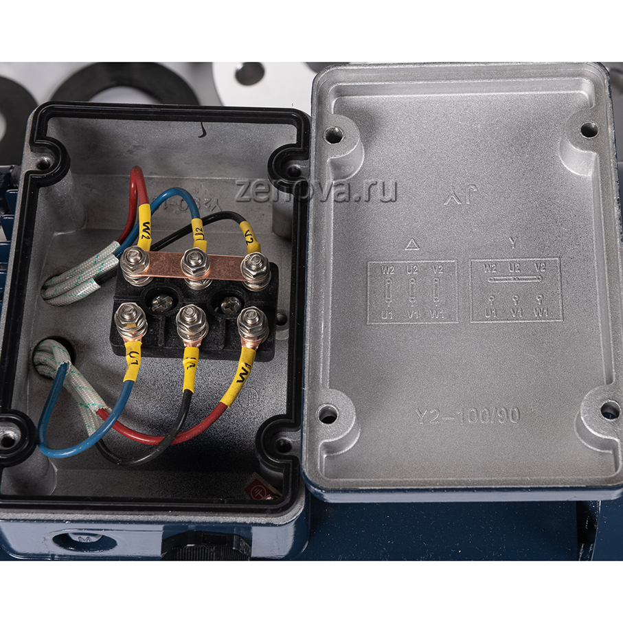 Насос оснащен трехфазным электродвигателем мощностью 2,2 кВт на 2900 об/мин. Стандарт фланца – DIN EN 1092-1 поверхность B тип 01 PN10, DN (диаметр) входного патрубка – 50 мм, выходного – 32 мм.